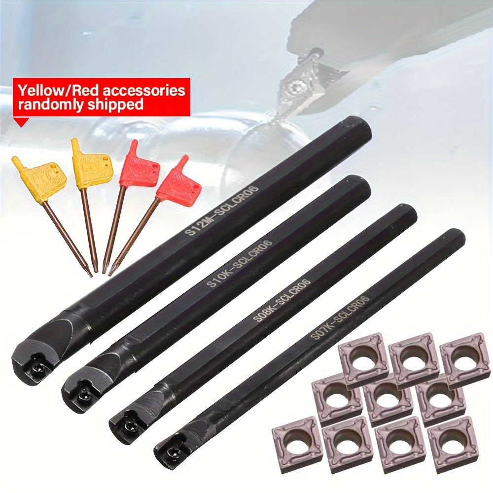 4db 7/8/10/12mm SCLCR 95° esztergáló fúrószár szerszámtartó + 10db CCMT0602 penge + 4db T8 csavarkulcs szerszámtartó készlet