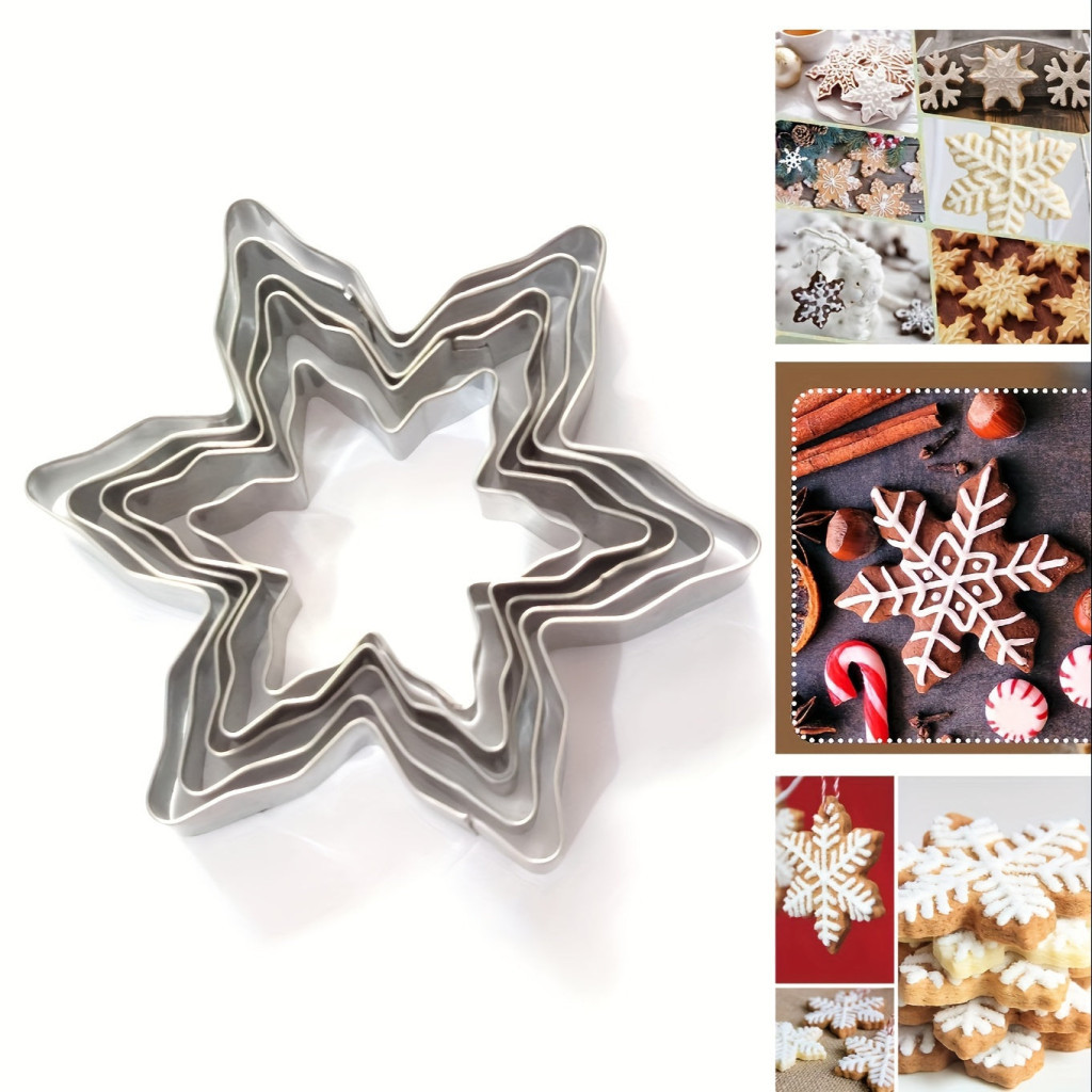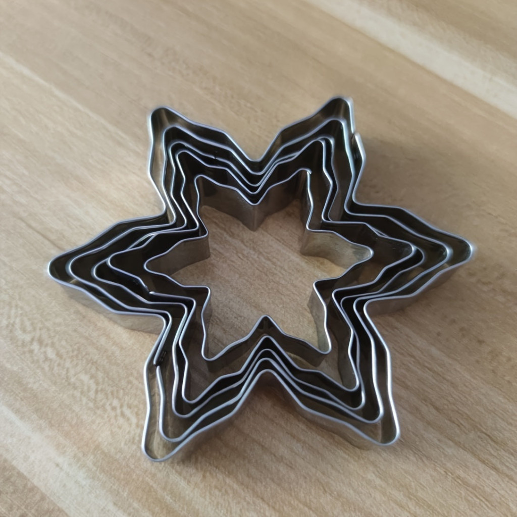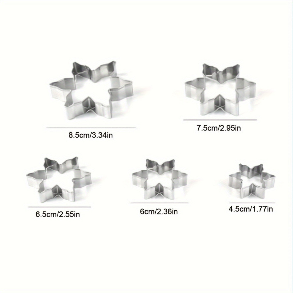 5 darabos Karácsonyi Süteményszaggató Készlet – Rozsdamentes Acél Hópehely Alakzatok Ünnepi Sütéshez