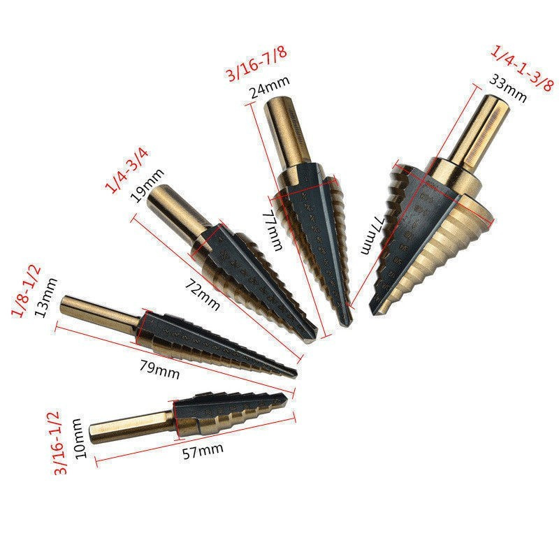 Az 5 db-os lépcsős fúrófej készlet gyors és egyszerű és PONTOS munkavégzést tesz lehetővé. Szabadulj meg a hibás mérésektől!