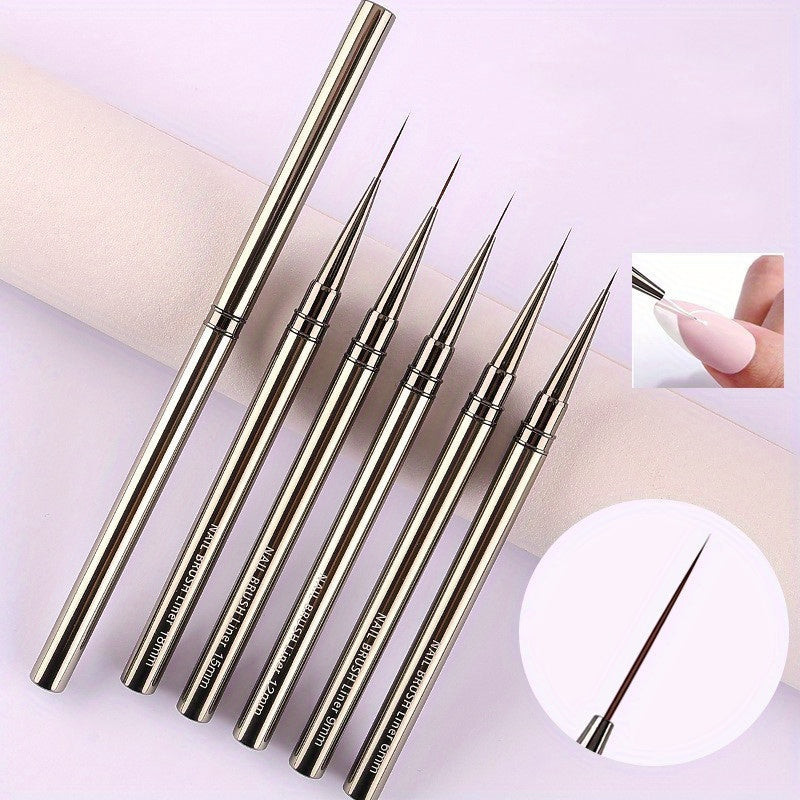 5db UV géllakk körömbélés ecsetkészlet Rajzvonalak Csíkfestés Virágtoll Körömdíszítés manikűr Fém fogantyús csíkozó ecsetek 6/9/12/15/18mm