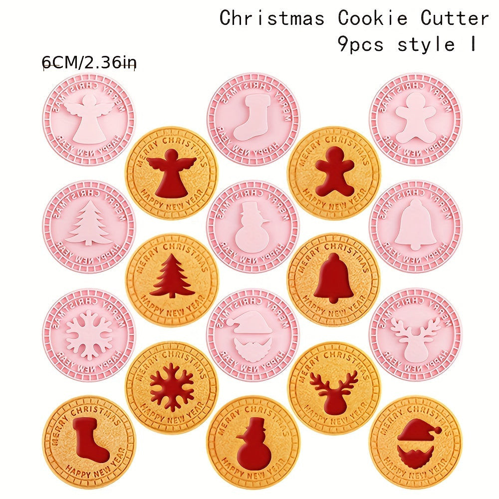 9db karácsonyi süteményvágók, 3D dombornyomó készlet 3D barkács rajzfilm préselhető kekszforma DIY sütibélyegző konyhai kiegészítők péksütemények sütőedények