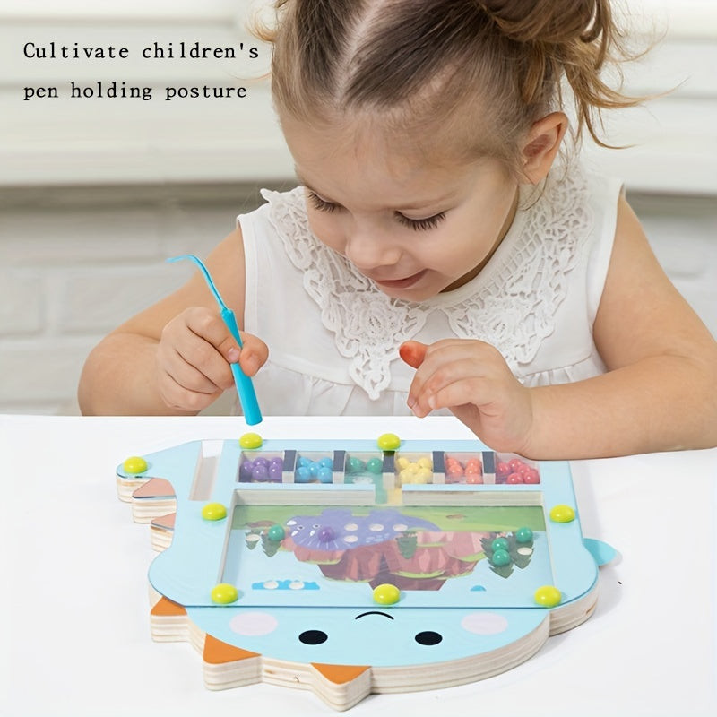 Fából készült dinoszaurusz mágneses gyöngy labirintus,