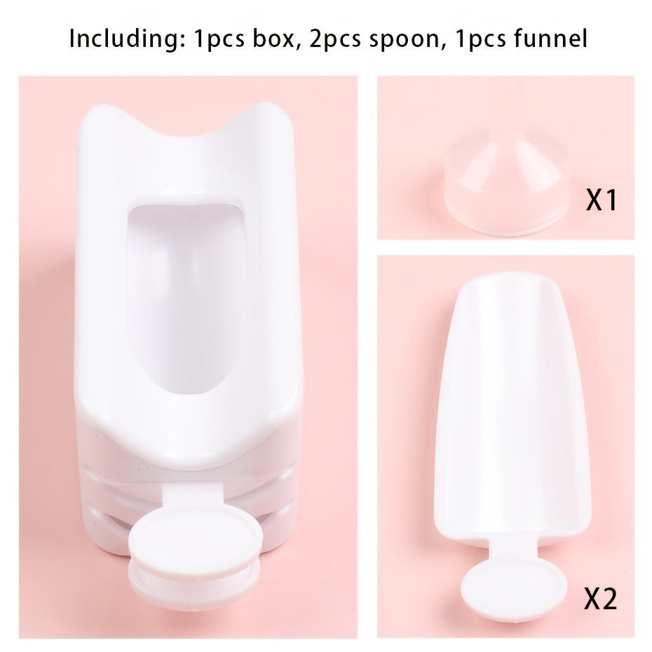 Fehér körömcsillámpor újrahasznosító doboz manikűr Gyűjtse össze a pigmentpor mikrogyöngyöket tartálytartó Kétrétegű tárolótok 2*kanállal+1*tölcsérrel
