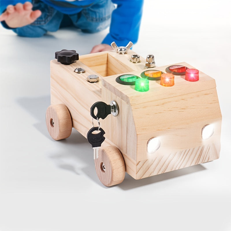 Gyermek LED Kapcsoló Foglalt Tábla – Fa Oktató Játék Csavarhúzóval & Javító Eszközökkel a Gyakorlati Tanuláshoz