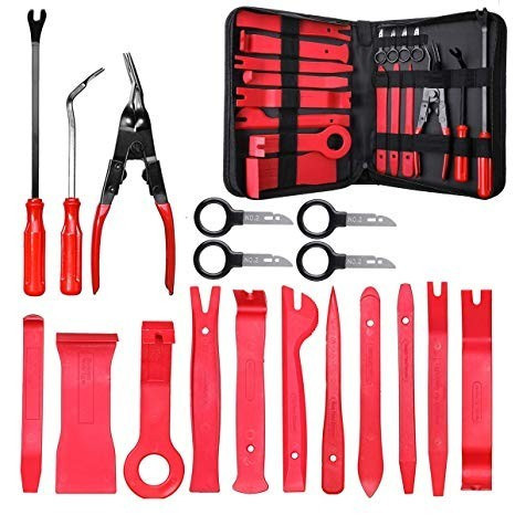 Helymegtakarító tartóval!A patent kiszedő és kárpit eltávolító minden autószerelenőnek, vagy autókkal sokat foglalkozó ember számára kötelező csomag! Ideális díszlécek, gumi tömítések, kapcsolók, ajtókárpitok és még számtalan más dolog biztonságos, bármiféle roncsolás nélküli eltávolítására.