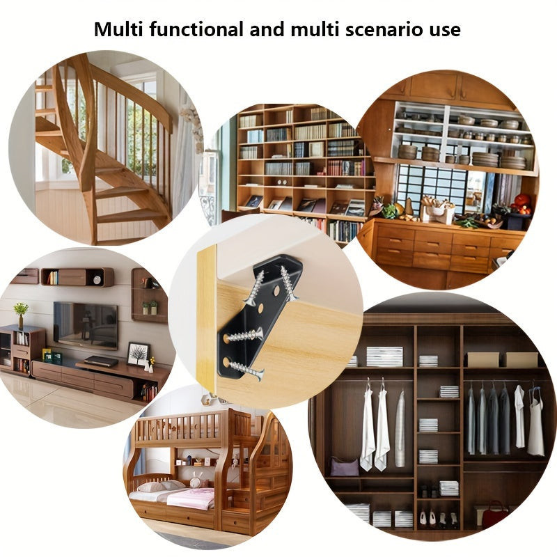 rozsdamentes acél sarokkonzol készlet, multifunkcionális háromszög alakú konzolok fa- és fémszerkezetekhez