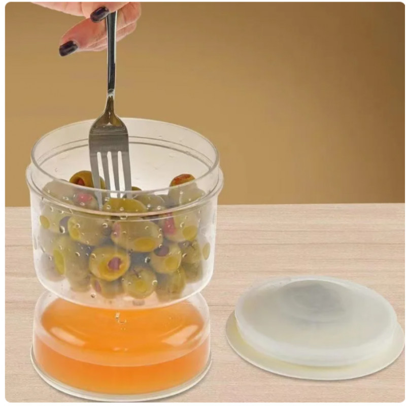 Ez a tároló üveg kiváló minőségű műanyagból készült, amely tartós, könnyű és praktikus.A kompakt és nagy nyílású kialakításnak köszönhetően könnyedén kiszedhető belőle a benne tárolt savanyúság vagy olívabogyó. Nem szivárog bárhogyan is fordítod.