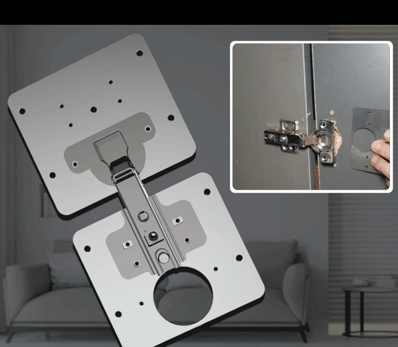 Egy fúró vagy csavarhúzó segítségével a lemez könnyedén felszerelhető a felületre, és nem kell mást tenned, csak rögzíteni a csuklópántot.